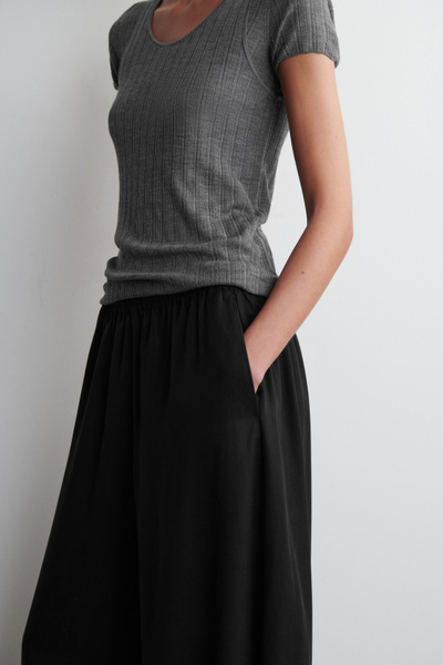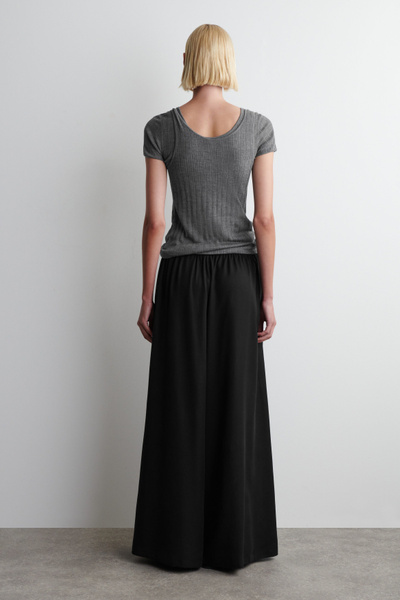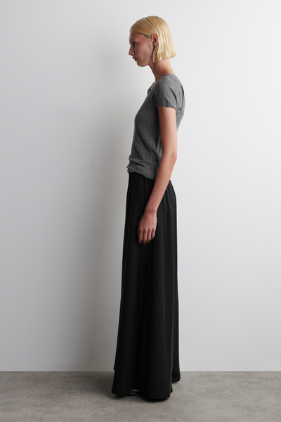 The womenswear team render our signature pants in flowy silhouettes for the balmy weather. Made from a drapey cupro blend, these palazzo pants are cut in a relaxed shape with wide, full-length legs. Adjustable drawstrings are hidden inside the elasticated waistband.