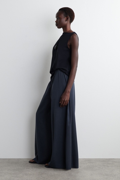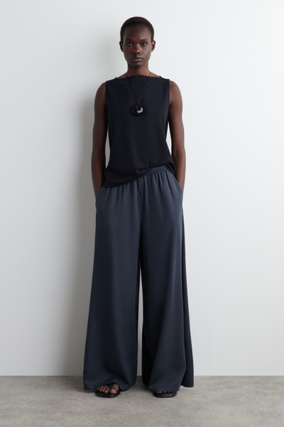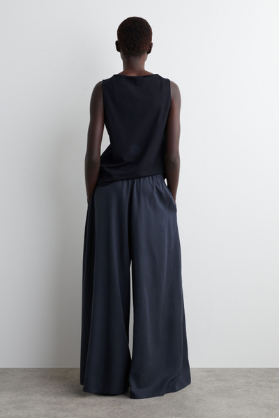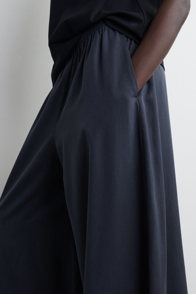 The womenswear team renders our signature pants in flowy silhouettes for the balmy weather. Made from a drapey cupro blend, these palazzo pants are cut in a relaxed shape with wide, full-length legs. Adjustable drawstrings are hidden inside the elasticated waistband.