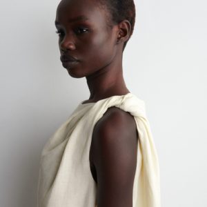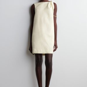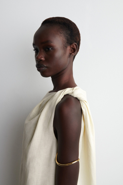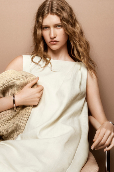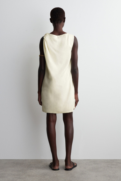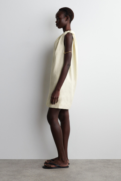 Rendered in a subdued butter tone, this understated mini dress has a twisted detail that drapes effortlessly at one shoulder. It’s crafted from ultra-light linen that’s suited to balmy days and designed with minimal details like the discreet side pockets. Style it with leather flip-flops.