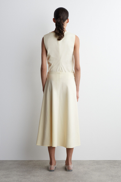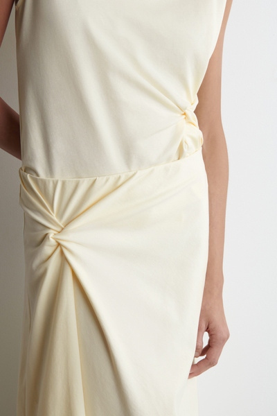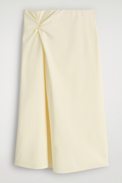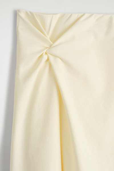 Asymmetric in shape, this midi skirt features a twisted detail that softly defines the silhouette. It’s designed with an elasticated waistband and crafted from soft Pima cotton-blend jersey in an enduring toffee-brown tone. Style it as a set with the coordinating top.