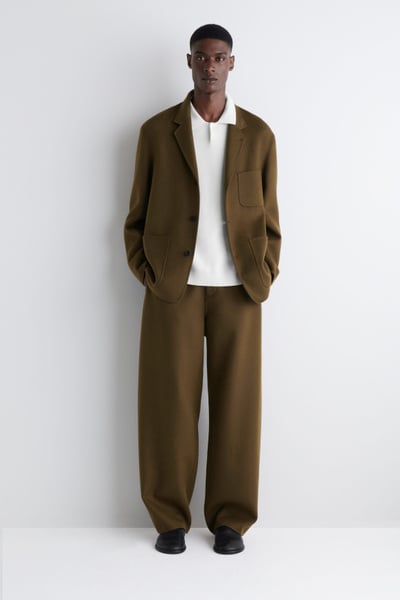 This season, the menswear team reframe the classic suit through a modern lens. This single-breasted blazer is crafted from soft split wool for a premium handle inside and out. The unstructured shape and trio of patch pockets lend a laid-back appeal, while the three-button closure gives it a contemporary finish. Style it with the matching trousers.