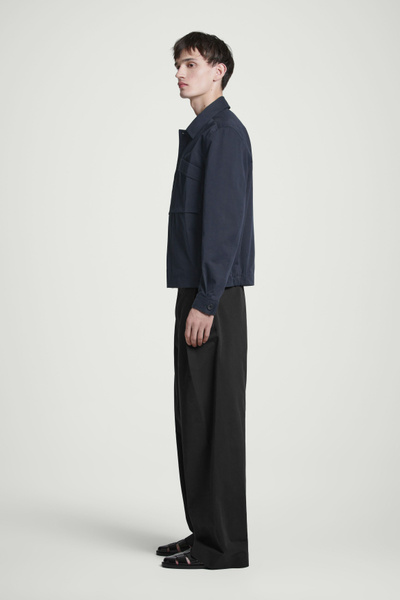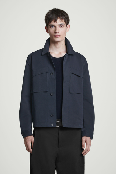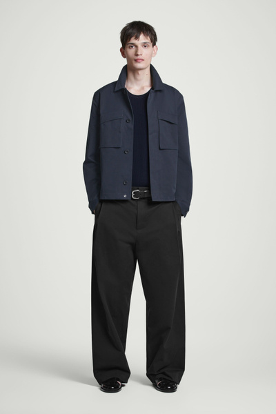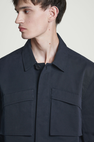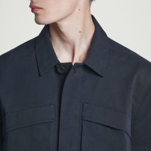 This season, the design team reconsiders a menswear signature: the classic overshirt. Rooted in utility, this piece is made from cotton twill that’s light enough for year-round layering and features workwear-inspired pockets, curved sleeves, and elasticized side panels for practicality. The rich navy hue is easy to style.