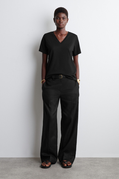 The COS womenswear team presents an everyday icon, perfected. This refined T-shirt is crafted from lightweight 150gsm cotton jersey, chosen for its comfort and unparalleled softness. It’s cut in a classic crew-neck shape and comes in a rich navy tone.