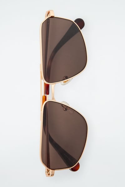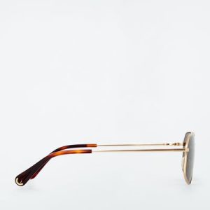 Introducing the LINDA FARROW spring summer 2025 collaboration: new expressions of nostalgic styles that embody a creative spirit – a meeting of timeless and contemporary. Sculpted in an angular shape, the Vista sunglasses have deep-brown tinted lenses that complement the gold tone of the wire frames and the tortoiseshell tips.