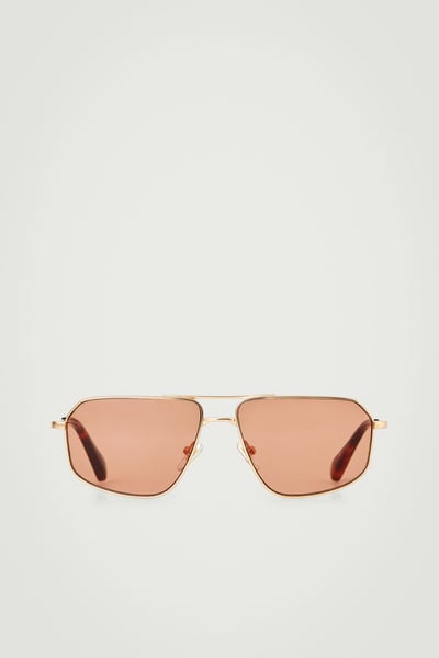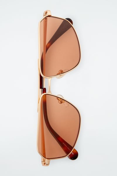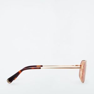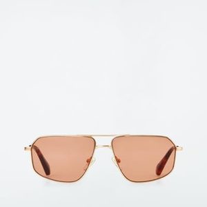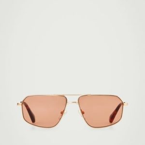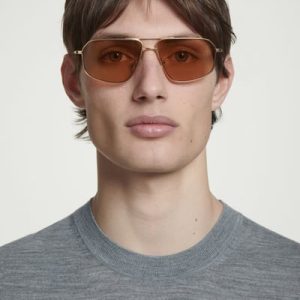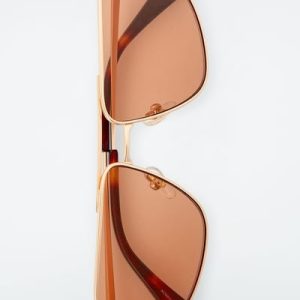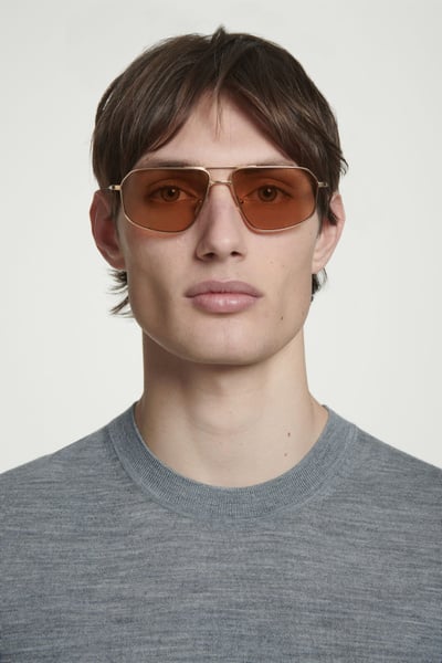 Introducing the LINDA FARROW spring summer 2025 collaboration: new expressions of nostalgic styles that embody a creative spirit – a meeting of timeless and contemporary. Sculpted in an angular shape, the Vista sunglasses have amber tinted lenses that complement the gold tone of the wire frames and the tortoiseshell tips.