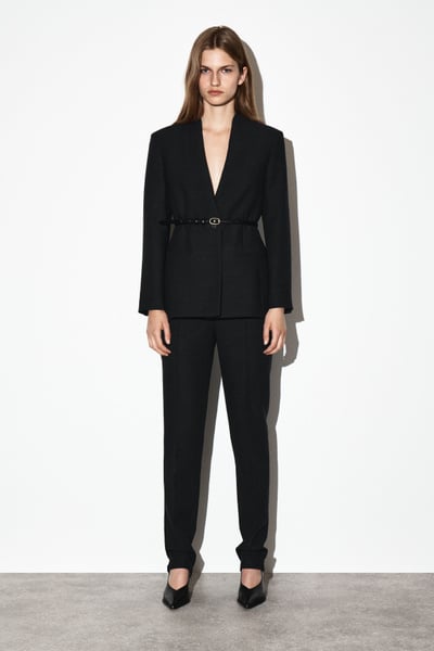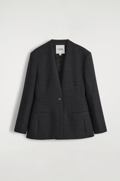 Streamlined silhouettes lead the COS tailoring collection this season. Crafted from an RWS wool blend, this refined blazer is tailored in a sculptural shape with precisely placed darts and seams to define the waist. It’s finished with structured shoulders and a collarless neckline. Style it as a suit with thematching trousers.