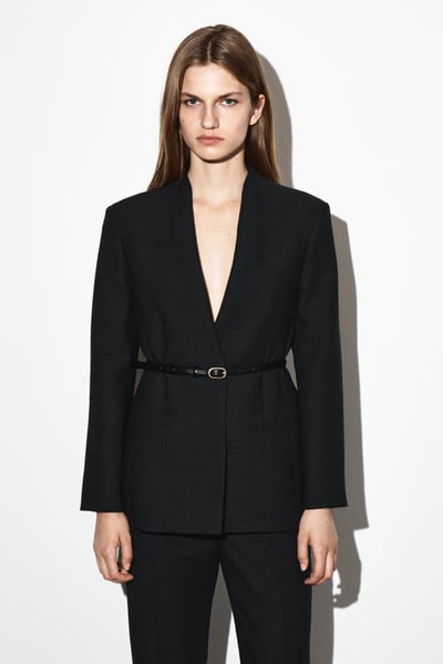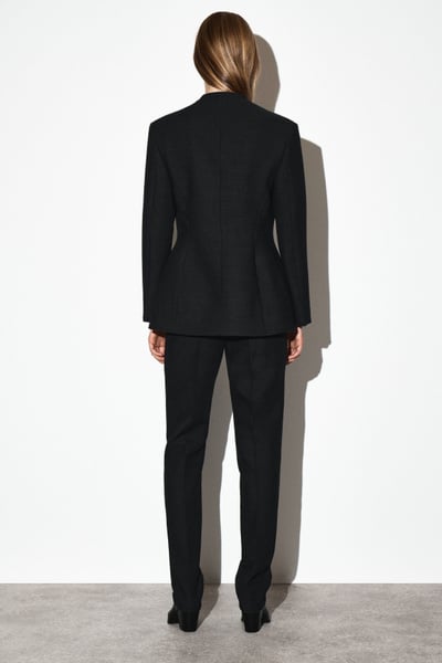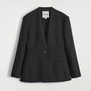Streamlined silhouettes lead the COS tailoring collection this season. Crafted from an RWS wool blend, this refined blazer is tailored in a sculptural shape with precisely placed darts and seams to define the waist. It’s finished with structured shoulders and a collarless neckline. Style it as a suit with thematching trousers.