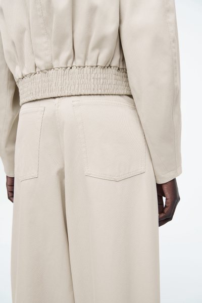 These pants strike the perfect balance between refinement and ease. Made from pure cotton, they’re shaped in a wide-leg silhouette and designed with five-pocket styling, belt loops and tonal topstitching for a nod to classic denim. The waistband closes with a hook-and-bar zip fly for a clean finish.