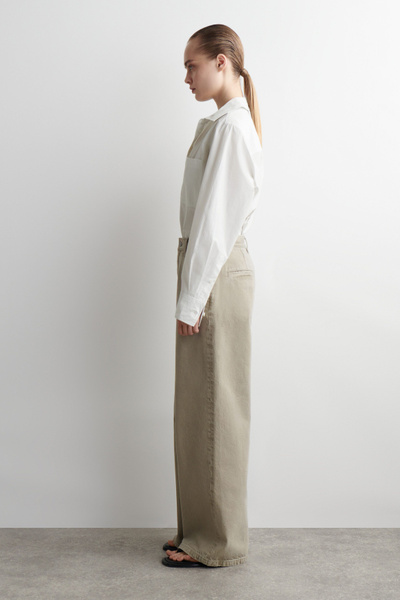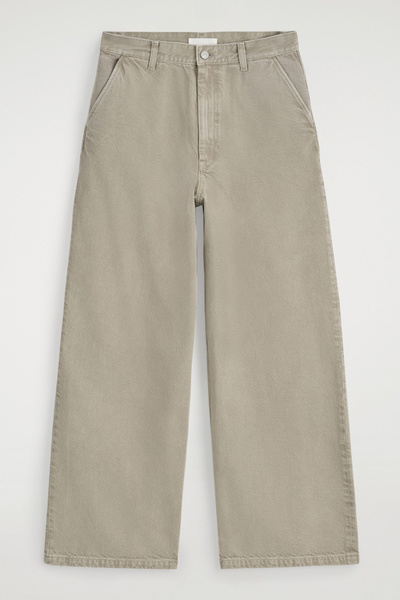 Made from raw denim, these pants are shaped with a high-rise waist and wide legs that pool effortlessly over shoes. The deep-indigo hue is offset by tobacco topstitching, while the widened belt loops and four-pocket styling modernize the classic codes of denim. Style them with the matching jacket.