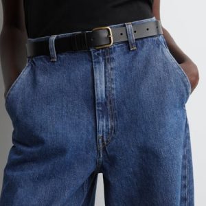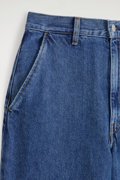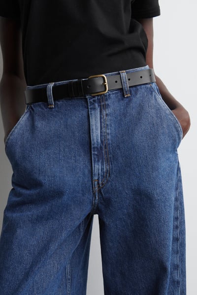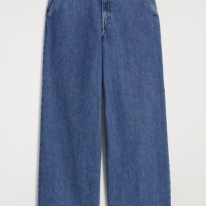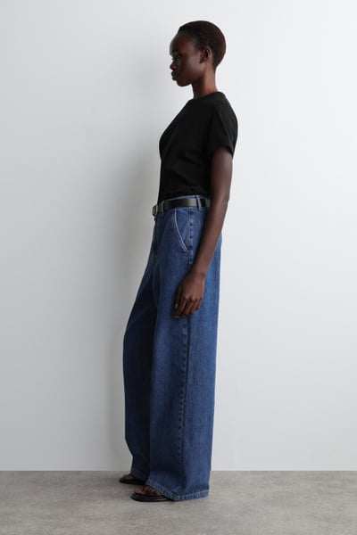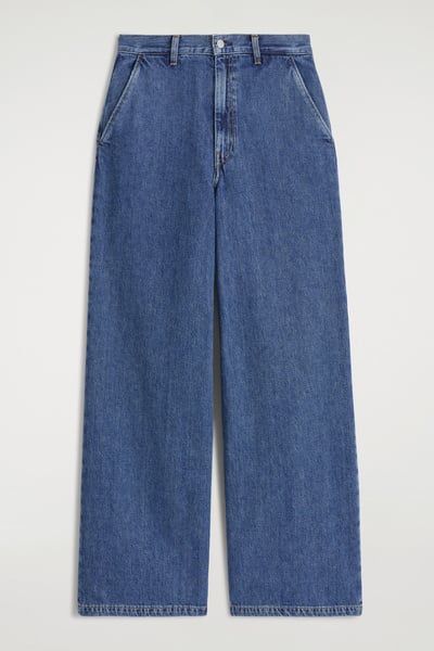 Made from organic-cotton denim, these pants are shaped with a high-rise waist and wide legs that pool effortlessly over shoes. The classic blue hue is offset by tobacco topstitching, while the widened belt loops and four-pocket styling modernize the classic codes of denim.