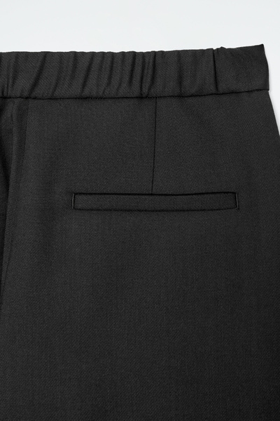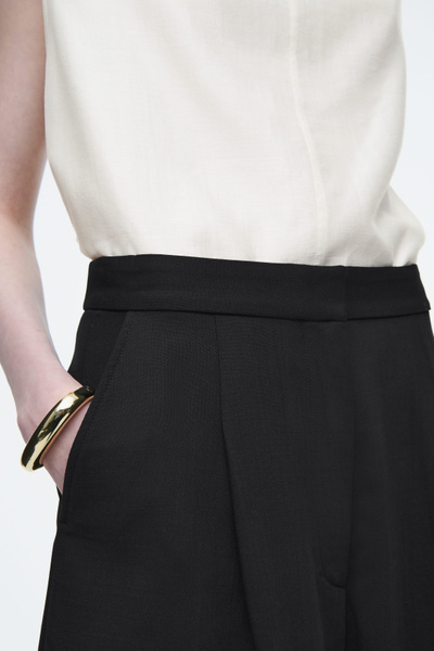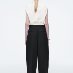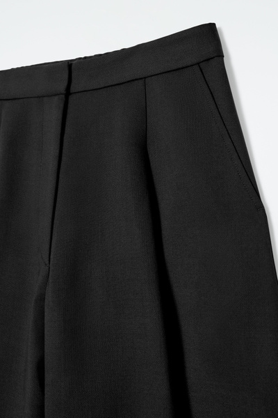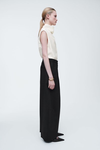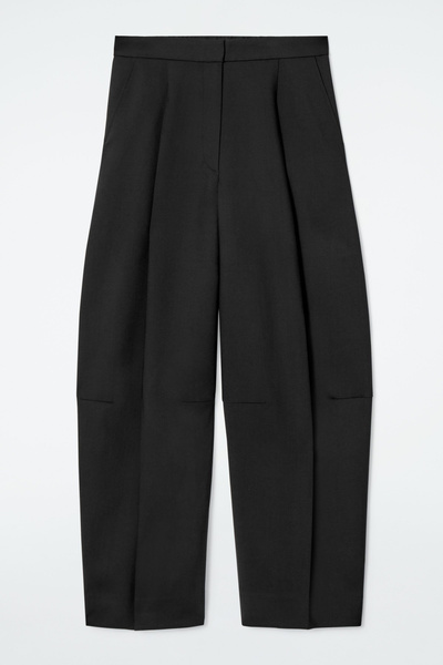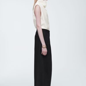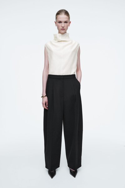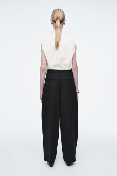 Directional shapes offer a fresh perspective on wardrobe staples for Autumn Winter 2024. Crafted from an RWS wool blend, they’re cut in a tapered, wide-leg fit and designed with front pleats and darts at the knees. They have several pockets and a clean waistband that’s elasticated at the back for comfort.