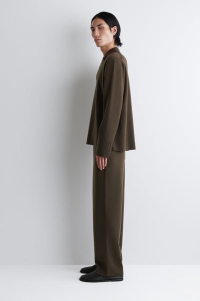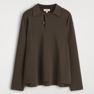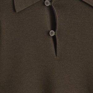 The autumn/winter wardrobe calls for modern signatures like this refined polo sweater. Knitted from lightweight RWS wool, it’s designed for a laid-back shape and closes with off-center buttons at the collar. Style it over a simple T-shirt.