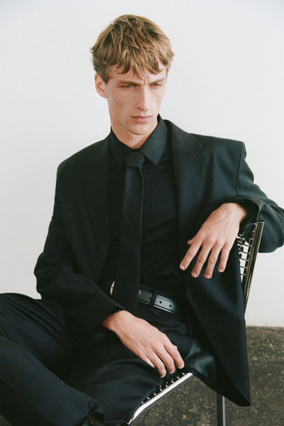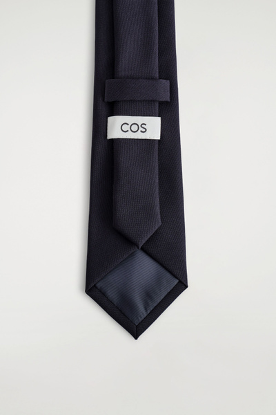 The menswear team offer a polished take on a tailoring classic: the wool tie. This one has a subtle keeper to hold the blade in place and comes in a versatile navy tone that will nicely offset a light-blue shirt.